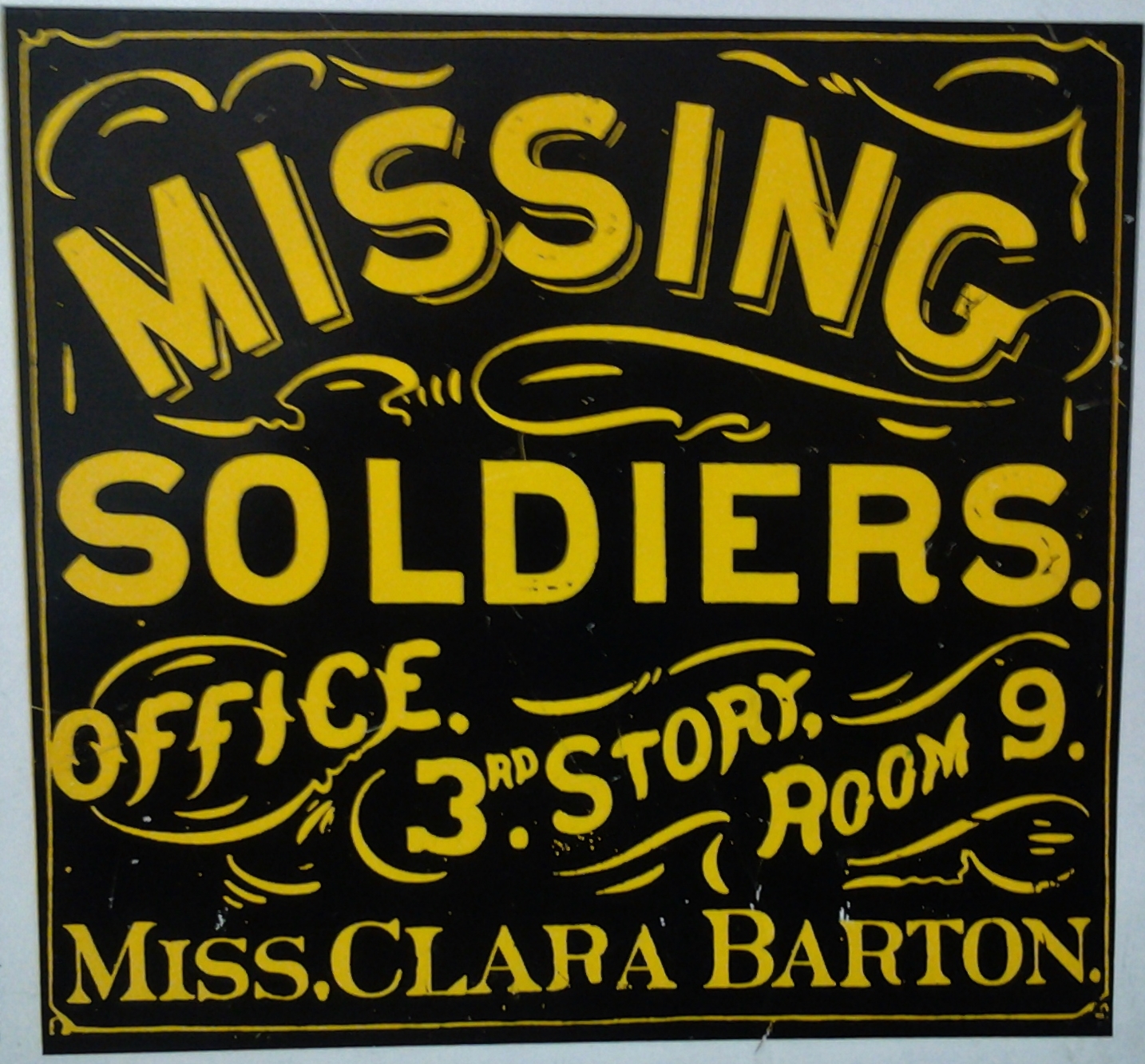 .In 1865, Clara Barton organized the Missing Soldiers Office in Washington, D.C. to provide information to the 60,000 families who tried to find out what happened to their loved ones who were missing in action. Atwater assisted Barton in this endeavor, and with the help of the 13,000 names on his list, they were able to account for 20,000 Union soldiers. Atwater and Barton lived in the boarding house where the Missing Soldiers Office was located.