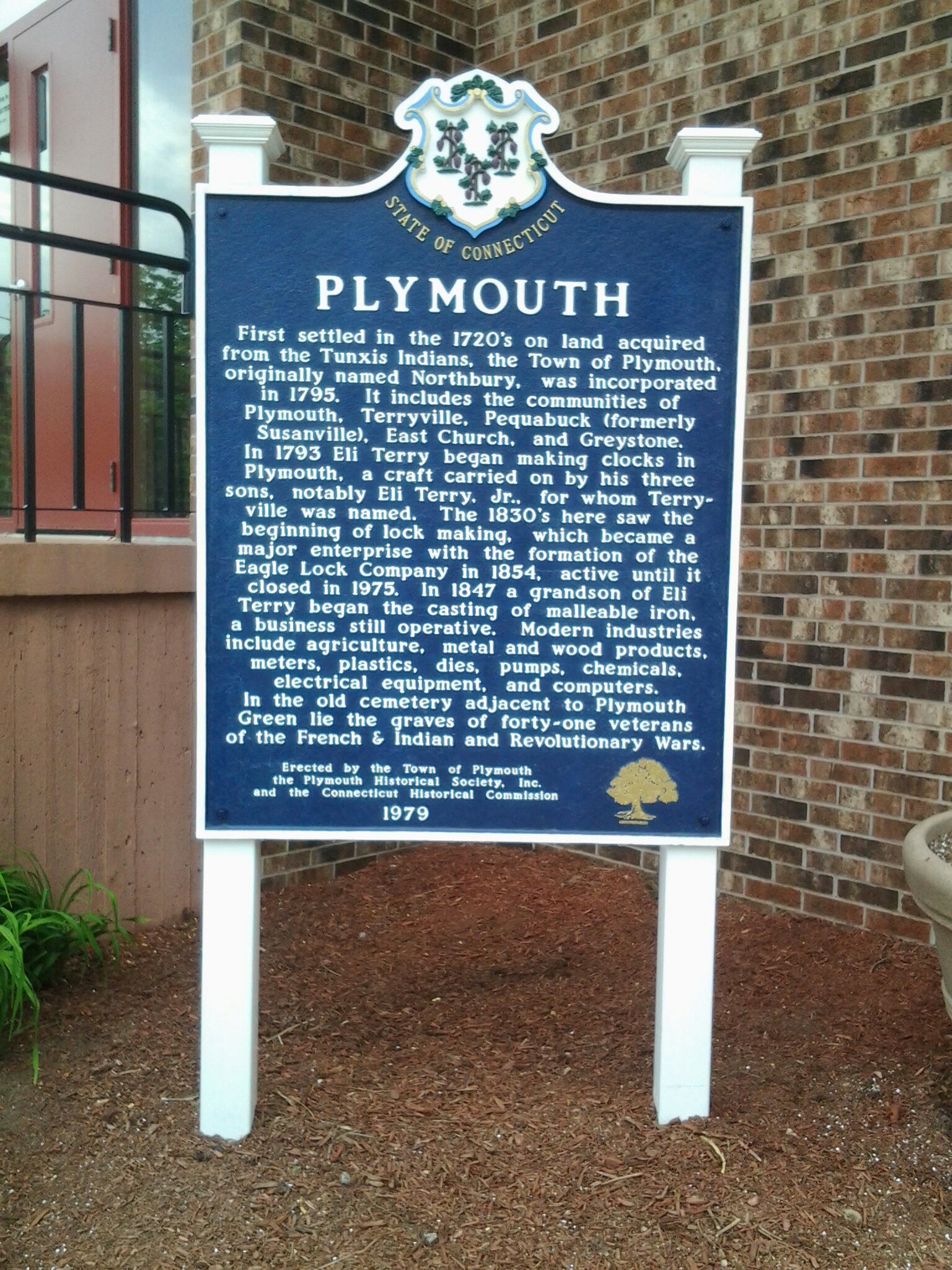Visitors to the Toll House Museum may notice that the blue “Plymouth History” sign that used to be on the front of the building is no longer there. It has been refurbished and moved to a more prominent location in front of the Plymouth Town Hall where more people can see it.